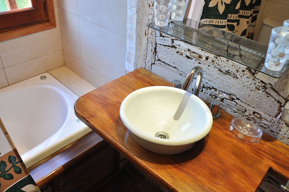 Las Cabañas Acantilados Golf están construidas con materiales de primera calidad y terminaciones artesanales, utilizando principalmente elementos de la Tierra, como piedra y madera. El interior cálido y delicadamente decorado armoniza con la paz exterior, comunicándose a través de amplísimos ventanales.