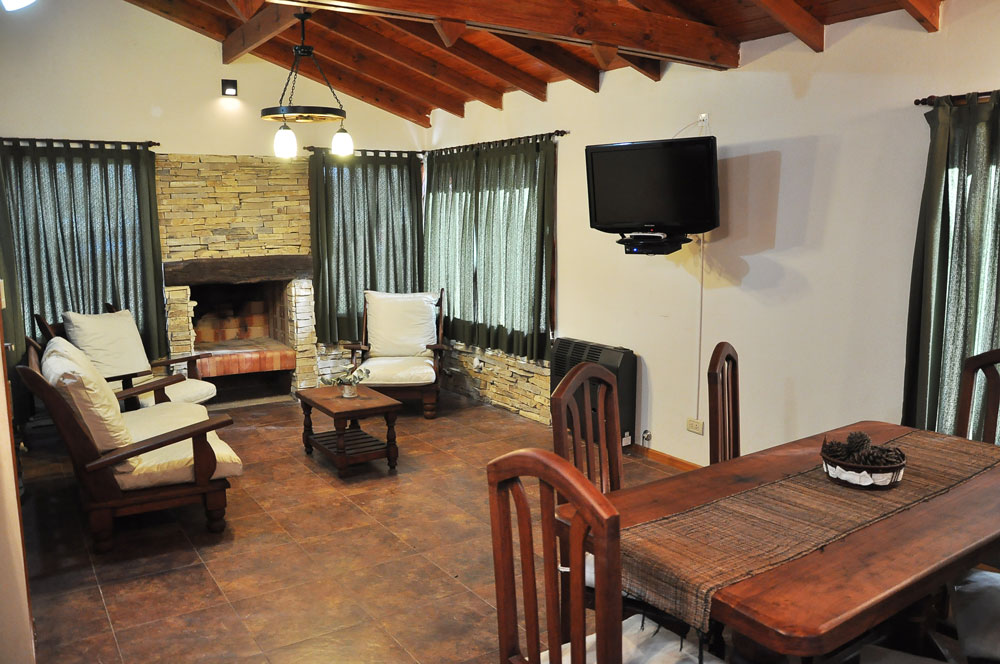 En Living - comedor, un cálido hogar y cómodos sillones serán el punto de encuentro de una apacible tarde de invierno. Amplísimos ventanales conectan este espacio con el verdor de los jardines, refrescando el ambiente en los días de verano.